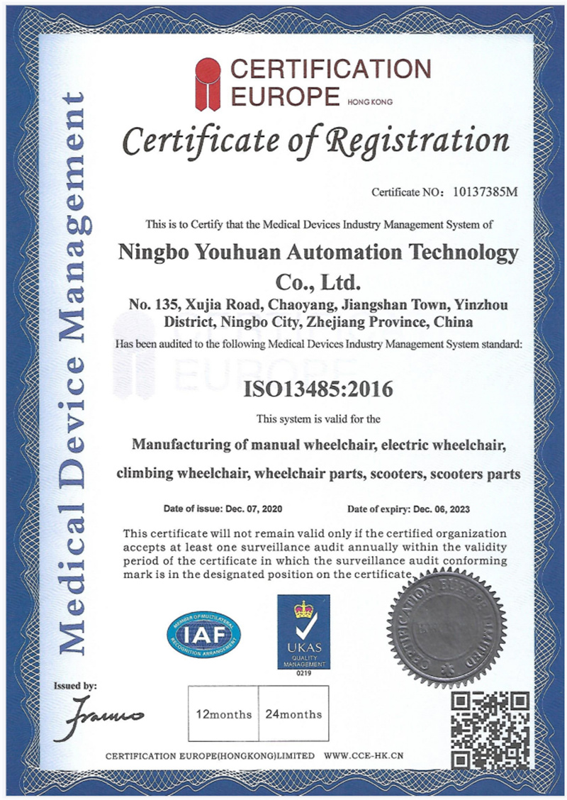Ningbo Youhuan Automation Technology Co., Ltd. is a professnal manufacturer for electric wheelchair, electric mobility scooter and someother electric product.